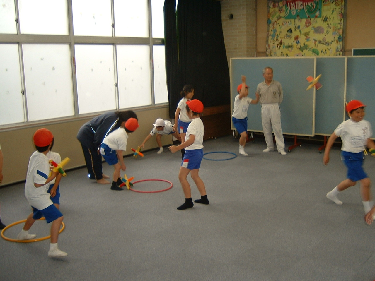 雨の日は体育館の土間やプレールームを利用して行います。