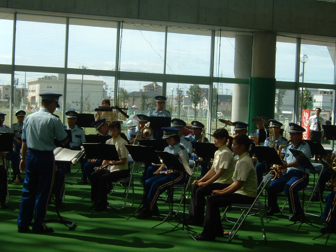 台風の余波で強風、戸外のイベントの多くはドーム内で、その結果、場所が狭くなり思いどうりの活動は困難、