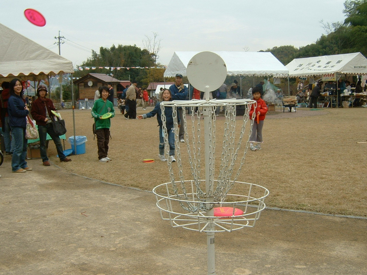 芝生広場に小さなスペースを与えられニュースポーツコーナを出しました。