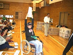 優勝は10月の高齢者軽スポーツリーダー養成講座に参加し、1ヶ月間、週3回天城小で練習をした