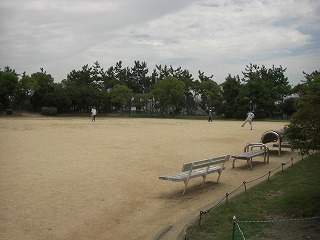 広場から見た球場 矢元台公園野球場