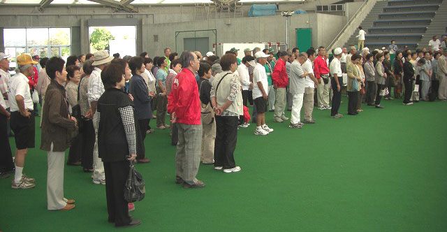 開講式に引き続きグラウンドゴルフの説明、そして、有城グラウンドにて実技を行いました。