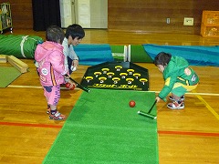 会場にはラージボール卓球2台とバウンドテニス、カローリング、マレットゴルフ、スマイルボーリング各1を用意しました。