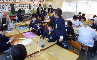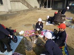 2月10日には教室で昔の様子を聞いた後、外に出て七輪に火をおこし餅焼き。