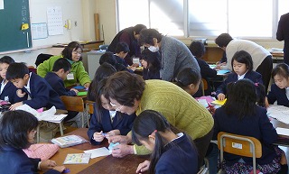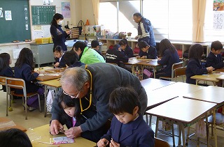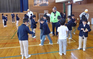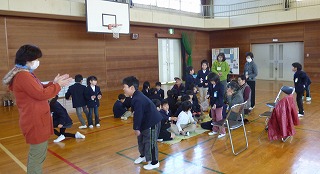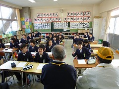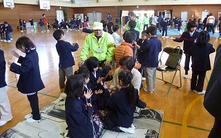 昔に返り、3年生(上 教室)・1年生(下 体育館)の子どもたちと楽しく過ごしました。