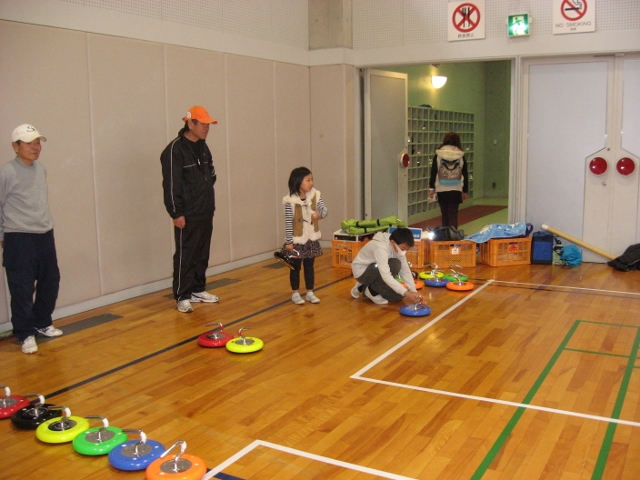 ![]() 【会場の風景】 参加者を4班に分け、ラダーゲッター(三村)、ヒューストン(中島)、 キャッチボール(星島)、カローリング(葭野)を体験 3時よりラダーゲッター、カロ―リングの試合を楽しむ |