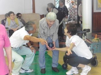 | 藤戸荘ニュースポーツ体験会 9月27日 今年もみんな頑張りました。 介護士さんとクラブ員の共同作業も息があってきました。 見て楽しむからしてみて楽しむへ! | |||