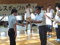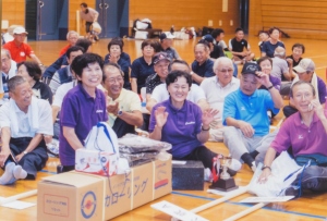 『ハ~トフルスポ~ツの集い』最終日 子どもゆめ基金事業の目的は子供と障害者の交流でした。 しかし、この日はクラブ員以外の障害者の参加は 0でした。 せっかくの良い事業目的が日程の都合で目的達成ができないことに腹立ちます。 参加した子供たちはいつもと違うおじいちゃんやおばあちゃんからゲームを教わったり、ゲームをしたりして 楽しい時間を過ごしました。 最後に参加者全員でニアピン大会をしました。 距離は体育館の隅から隅まで約50メートル。 スマイルボーリングのピンをめがけて、カローリングのジェットローラーを投げました。 真直ぐ投げることが難しい上に、ナガ~イ距離です。 子供の部は3年生の三村さん。大人の部は74歳の秋山さんが優勝しました。 三村さんは全体でも2位でした。 最後はみんなにポカリスエットがご褒美。 |