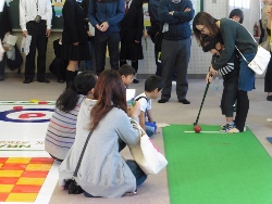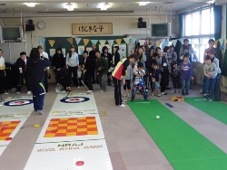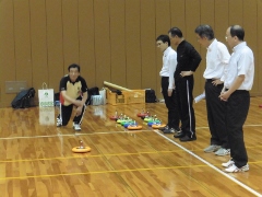 社内懇親会の余興 担当者が他県在勤中にカローリングを見て、懇親会 前の余興に汗をかかないスポーツとして良いのでは と相談あり。 事前説明に20分、練習10分、試合時間50分の 計画で実施。 試合は上司も女子社員も和気あいあいと・・・ 試合の後は会場を替えて懇親会 |