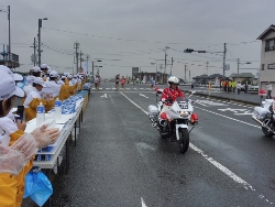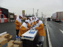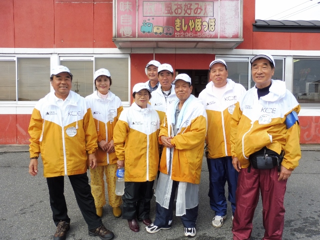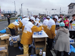 8名で参加 準備をするころから雨が上がりました。 大勢のランナーは一斉に・・・応援のおばちゃんが見かねて手伝い 来年は10名が必要。 隣はセオリーが担当(若い子バッカ!) |