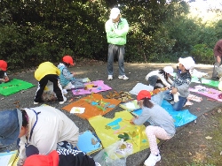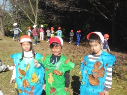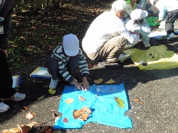 | おじいさんおばあさんと一緒に、殿ヶ居地公園に行って、落ち葉を拾い、ファッションショーをしました。 この活動も天城学区コミュニティ協議会に全面移転した方がいいのかな?(コミ協の自主行事が増えて格好がつくか?) |
