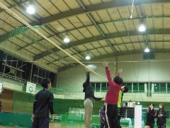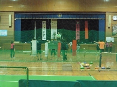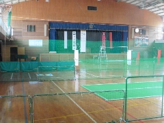 アウトドア―2コート インドア―2コート 来年はインドアー3コート(?) 三村、中島、鈴田の3名は先乗り 支援学校からの4名は13時に到着 多くの家族連れでにぎわいました。 ただ、小さい子が多くコートをかなり 短くして対応。 それでも試合に時間が かかり、できない子がいました。 |