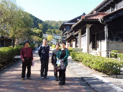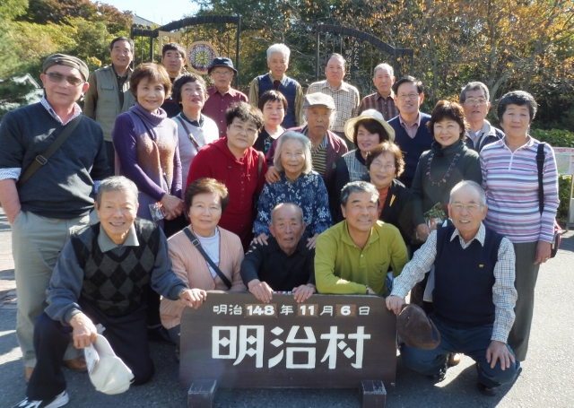 大津パーキングで琵琶湖をバックに 華厳寺は参道が長く、皆さんバラバラになってしまいました。 全員が本堂までたどり着いたかは不明です。 星島美穂子さんと大水清子さんは朱印帳を 宴会は和牛のしゃぶしゃぶ 明治村入場門のところで記念撮影。その後は2時集合まで散策 それぞれ目当ての場所に。 森田夫妻もスタートで遅れましたが、周回バスで何処かに 私はほとんど一人で見学したいところを歩いてゆっくりと‼ 電車に乗ったり、汽車に乗ったり、バスで回ったりと、 皆さん思い思いの明治を楽しんだようです。 |