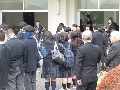 | 卒業式に参列するのは2回目ですが、一生懸命さが伝わってくる感動的な式です。 玄関での見送り風景も在校生が、心から3年生を送り出す雰囲気が伝わってきます。 |