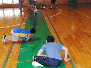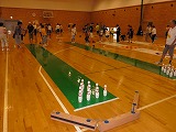 | 県下からの出場者450名((3グループに分かれる) 各2ゲームのトータルで優勝を競う。 8時集合で、終了は16時 連日のイベントのため、疲れる。 【9日=21時~22時までカローリングのコートづくり、 10日=9時より10時30分、12時~13時まで大会準備。 13時~16時カローリング大会。 17時まで後片付け。 11日=8時集合~15時40分障害者ボウリング。 19時30~21時バウンドテニス。 12日=10時~13時30分カローリング大会の成績・会計整理。 14時30分~16時天小ニュースポーツクラブ。 16時30分~18時写真編集・HPアップ】 |