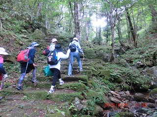 朝8時30分に天城を出発。山陽道で備前ICまで行き、 そこから2号線で上郡に、上郡から373号で 作用町へ、作用ICから鳥取自動車道で西粟倉ICで降り、大茅スキー場を通り若杉天然林に到着。 標高900mの駐車場は涼しく、遊歩道散策の期待は増す。 荒い苔むした石畳の緩い坂道を上り下りしながら吉井川源流の渓流、小さな滝を聞きながら、 一面苔に覆われた谷間、鳥のさえずり。(蝉はほとんど聞こえない) フィトンチットを一杯浴びながら展望台へ。(1100m) 展望台からは後山・氷ノ山が一望。 展望台で昼食を食べ下山。 次回は、第1分岐点から、第2、第3経由の散策を楽しみに家路に! 19時から多津美中でバウンドテニス・カローリングを楽しむ。 70歳を超えた若者たちの1日です。 |
