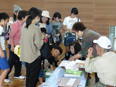 | ふれあい大会は昨年は台風で中止、その前は雨天のためグラウンドは中止、SL91天城はここ2回は天城町と合同でニュースポーツチャレンジコーナーをしています。 1回10円でスポーツに挑戦すればお菓子のつかみ取りができます。毎回人気のコーナーです。 |