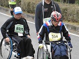 | 吉備高原のアップダウンのコースを車いすで走るのは非常に苦しい競技だと思いました。 私のいた場所はゴール前の上り坂です。目の前を懸命に車いすをこぐ人の姿は涙なしでは見られない光景でした。(3㎞) 優勝したパラリンピック出場選手は下り坂を疾風のごとく走り去ります。 登りもさすがでした。 優勝した選手はいずれも2位の選手をかなり離して圧勝でした。 |