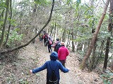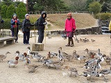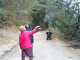 | 散策道路より山登りを目指すと、途中でいずれの道も柵がしてありました。(イノシシが出てくるとのこと=窪地にイノシシがエサを探した跡がありました。) 山登りは残念でしたが、池には鴨の大群が飛来しており、食パンを持参して餌やりを楽しみました。 また、小鳥(やまがら)が手から餌をとる場所もあり、十分楽しめました。 |