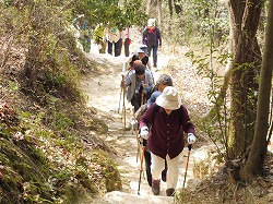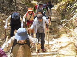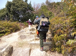 | ケーブルカーの駐車場に車を止め、農道をルンルン気分で登山道に向かう。 少し登ると、山は岩山で岩を削った道を登ることとなる。 | ||||||