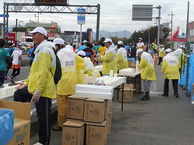 ![]() 今年はスポーツドリンクではなく、水を担当。 ドリンクより扱いやすく、順調に推移。 端っこの島なので、終了後のコップ、バナナの皮など ゴミの清掃が大変 |