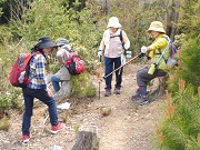 | 7月豪雨で閉鎖されていたようです。 今回歩いた道も現在閉鎖中の道でした。(山を下りて看板を見つけました。) 道もかなり傷んでおり、崖の修理中でした。 | |||||