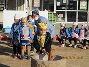 | 日比小でカローリングの体験会、防災訓練で段ボールベット作り、幼稚園でお餅つき | ||||
