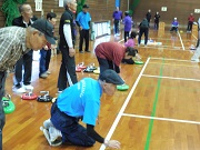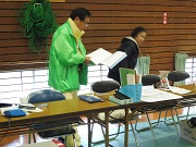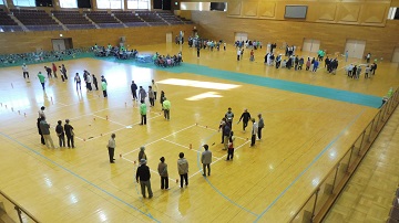 | 前日のおかやまマラソンから天小体育館に帰り、 翌日の総社市の打ち合わせ。 種目担当を決め、各自ルールを確認。 2時間で4種目を行うため、総社市用の ローカルルールを担当者同士で確認。 11時に現地集合。 準備を終えてから、昼食。 最初は少し市の対応がもたもたしたが、(スポーツ 担当の職員ではなく、福祉課の職員) 順調に事故なく閉会を迎える。、 |