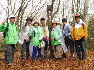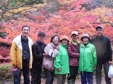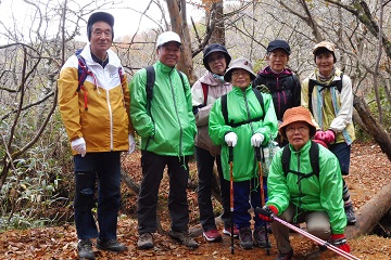 | 六本杉から根曲がり杉を通りすずのこ平(1080m)に登る予定でした。 登り道は落ち葉が積もり、ふかふかで足には最適。ただし、山は紅葉は過ぎていました。(道中の山並みは紅葉の真っ盛り) 天候は曇りから小雨やがてアラレとなったため、奥ぶな平で昼食を取り、奥津渓谷に向かう、紅葉を満喫して、大釣温泉にゆっくり浸かりました 。(温泉から見る奥津渓谷も最高) | ||||||