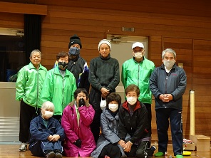 | 12月21日より活動を自粛していましたが、新年になり9日より活動を始めました。(初参加の面々) ただし、多津美中体育館は1月中休止しています。 | |||