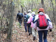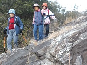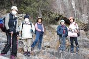 | いろいろの道を体験=石段・ごろごろ石の道・滑る山肌・背丈を超えるシダ・大きな岩の端の細道・岩石の自然階段・ロープを持って澤下り及び渡河 ロープをもっての登りや下り、中にはロープを頼りのシダの中の下り。 池まで下りて一安心と思ったら、そこからは澤下りの道が大変でした。下りたところから駐車場まで約2・5km |