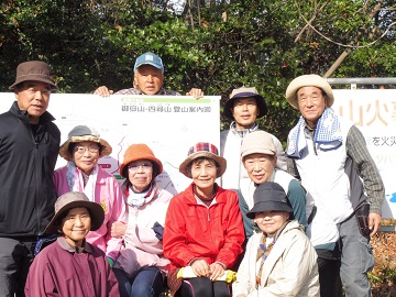 | 標高500mの山と侮っていましたが、ロープを使って上り下りするところが意外と多くありました(過去最高)。 登りは木野山コース、下りは妙見コースを歩きました。 今回、葭野の同級生の森島夫妻が参加してくれました。元自衛隊だけあって元気なものでした。 私は頂上での昼食後に、足をツリ大変な思いで下山しました。 帰りは種井屋によって野菜や苗などを買って帰りました。 少しきつかったですが、皆さんとても喜んでくれました。 |