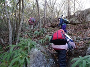 寄島の町から登り、クラボウに下りた。 登りは小ピークが5・6回これが意外と 疲れる。 下りは真下に下りる感じ。 落ち葉の上を 滑って下りた人もいた。(正解) |