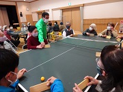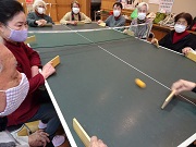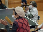 | 総合グラウンド体育館から初めて公民館に会場変更。 広さは9m×12mと聞いていたので、ユニカール(始めて)とデッキスティックゲーム・卓球バレーを持参。 ユニカールは正しい投げ方をしないと肘を壊す危険性があるので、卓球バレーを呼びのため持って行く。(卓球バレーは毎年持参して皆さんに喜ばれている。) シニアには卓球バレーで笑顔がはじけるシーンが最高!(コロナの心配はあるが・・・) |