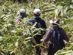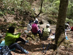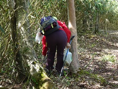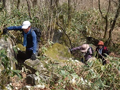 ![]() 標高1248mでも駐車場は1000mにあります。 道が悪く、駐車場の手前の広いところに車を止め登る。 帰りは女性2人が道路状況を見ながら右へ左へと指示。 女性2人は根曲がり竹を取るのに一生懸命。 |
