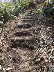 ![]() 標高953m 最後の登りはかなりハードでした 熊笹の生い茂る中に登山道があります |