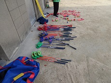 玉原小学校の父兄より情報を得ての 依頼でした。 カローリングとのことでしたので 持参しましたが、低学年が多く 2色で行った方がよかったと思いました。 もっと詳しく聞いていれば、別の種目を 紹介できたのに・・・ |