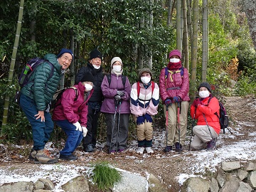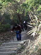 福山城址には過去2回登りましたが、1234段は避けて きました。 今回は精鋭を集めて階段登りに挑戦です。 覚悟をしてきましたが登り始めると階段とは言え、 土を丸木で土留めし、高さも広さも適当で、石段違い 膝への衝撃は軽く非常に登り易いものでした。 真冬でしたが本丸跡は日当たりもよく、楽しく昼食を 採ることができました。 安養寺にお参りをして帰りました。 |