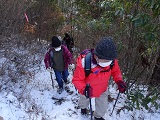 昨夜は雪がパラパラ降ったようですが朝は快晴。 玉島ICの峠を越えたあたりから山陰に雪が残って います。 穂井田あたりから車が渋滞、真備の橋の 上でスリップ事故があったみたい? 小幡さんと落ち 会うう矢掛道の駅に1時間遅刻。 登山口より積雪がある状態。 初体験の登山でした。 |