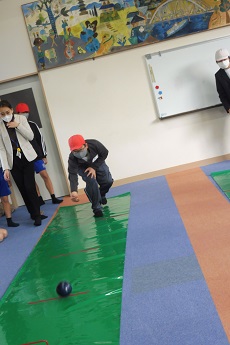 | 昔遊びクラブが凧揚げをするためにグラウンドを譲り、教室でスマイルボウリングを行う。今年は室内は1回のみでした。 | |||