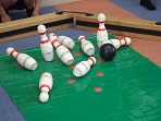 | 雨天のため3回ワールドルームでスマイルボウリングをしました。 1チーム4名でトーナメント戦を行いました。 | ||||||