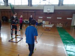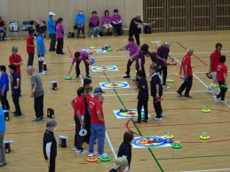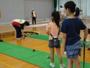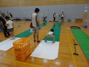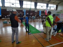 | 県レク主催のスポーツ・レクリエーションフェスティバルに今年も10種目を持参しました。 カローリングはジュニア3、メジャー1を用意しました。 残り種目は全て2コートを用意しました。 朝の天候があまり良くなく、子どもの参加は少なかったようです。 サブアリーナ全面を使い、通常あまり目にしないスポーツに大人も子供も一生懸命挑戦してくれました。 毎年のことですが、昼食を取るのがやっとでした。 |