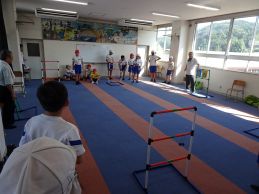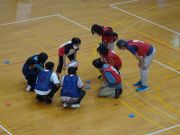 | シュートゲームの子供たちでした。 運動場での活動(クッブ)を予定していましたが、 高温のため室内に活動場所を変更 | |||
