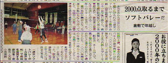 ![]() ミレニアム記念大会の様子を報じた山陽新聞 源平ソフトバレーボール藤戸合戦はクラブの目玉行事として インパクトのある行事をしようとの発想から生まれました。 大晦日、元日は皆さん意外と手持ち無沙汰で、 寝転んでテレビをなんとなく見るという生活です。 これでは太るだけで健康的では有りません。 そこで、適度な運動をして、すっきりとした正月休みを過ごせる行事を考えました。 確かに参加者はそれでよかったのですが、 中心となるスタッフは体育館で30時間程度過ごすことになります。 それでも若いうちはどうにかなりましたが、 55歳の声を聞くころには身体が持たなくなりました。 加えて、孫も出来るし、娘や婿も来るので『少しは家にいてくれ』と 女房に言われだし12時間に短縮しました。 それでも長いと6時間にしてみましたが、これは短すぎました。 しかし、年齢には勝てず、19回より6時間に短縮。 こうなると、高齢者は圧倒的に多いクラブ員がSVBに出場できなくなりました。 会員は、裏方としてモクモクと働いています。 |