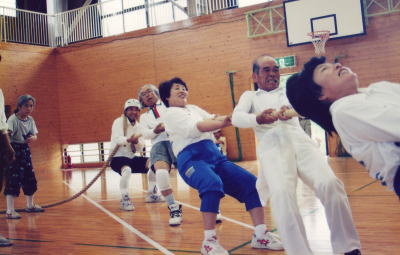 阿波村では町内綱引き大会に飛び入り