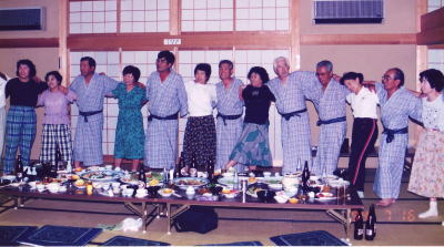 湯原町交流会(帰りに下湯原温泉にて―女性は遠くから眺めるのみ)