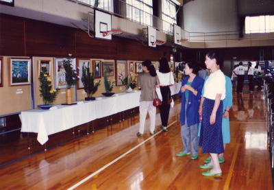 92年は学区内で活動する絵画、書道、写真、工芸、華道関係者の作品を、スポーツ講演会会場内に展示することに