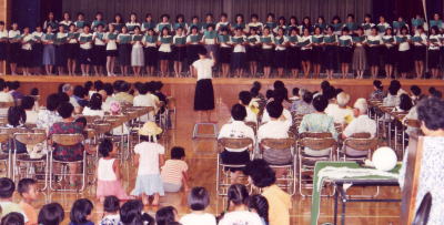 | 新納さん・三宅校長による三曲や合同民謡会による民謡、 幼稚園PTAの合唱それに婦人会の健康展 フルート演奏や日本舞踊など多士済々の方々に参加いただきました。 規模内容とも充実したものとなり、地域の人材が把握できましたので、我々の役目は果たせたと思います。 |