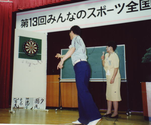 尾道ではダーツのデモがあり3投75点で1位(葭野)となり協会の西崎会長より1セット贈呈