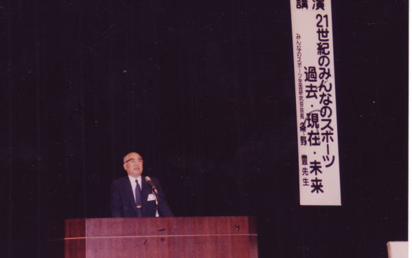 00年 4月 スポーツフォーラム開催(山陽ハイツ講堂) テーマ『地域スポーツクラブ育成の課題』
